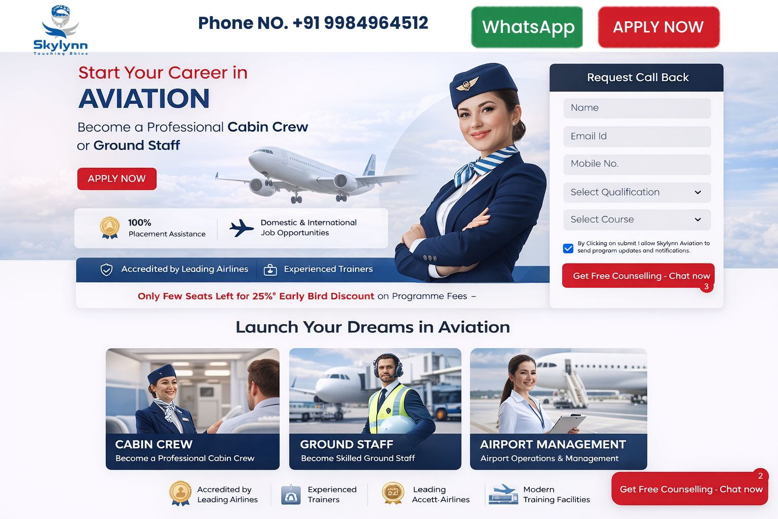 At Skylynn Aviation Academy, we are passionate about shaping the future of aspiring aviation professionals. Based in New Delhi, we are a premier training institute dedicated to transforming ambition into successful careers in aviation, hospitality, and tourism.